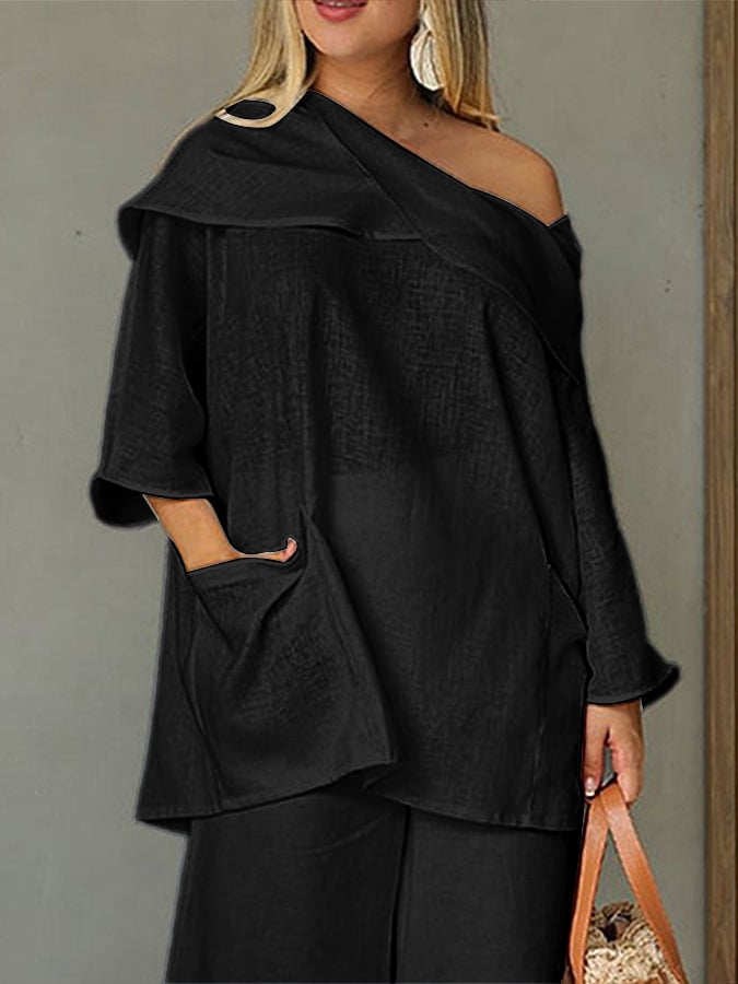 Women's Casual Solid Color Long Sleeve Cotton and Linen Top