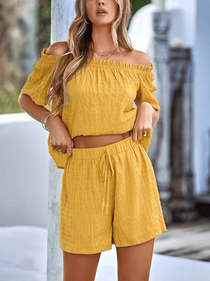 • Women'S Loose Off-Shoulder Shorts Pants Set